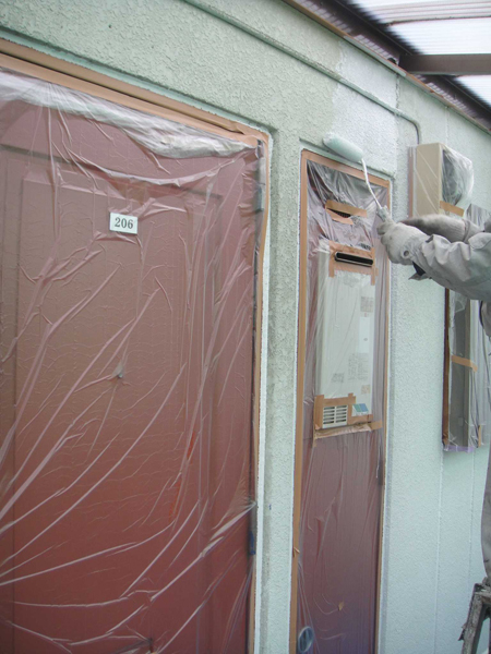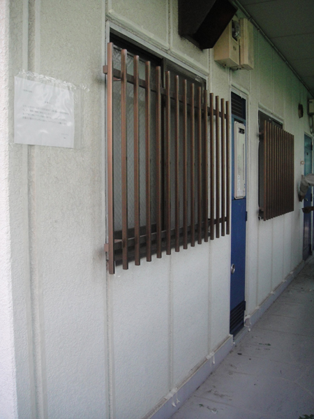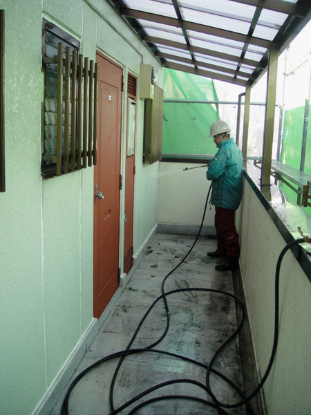 ケレン(サビ落し) このあとサビ止め塗装をします。 ドアの錆止め塗装と廊下の高圧洗浄 | ||