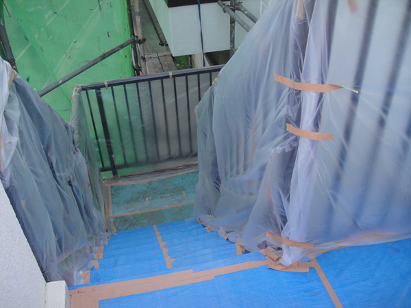 アパート外階段の鉄骨と鉄部修理塗装工事