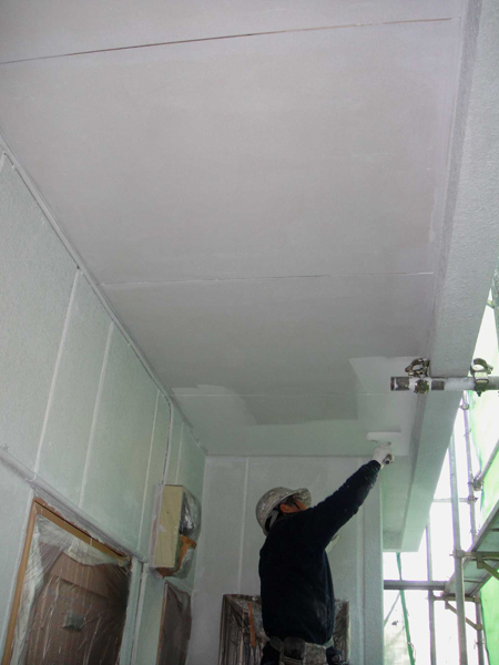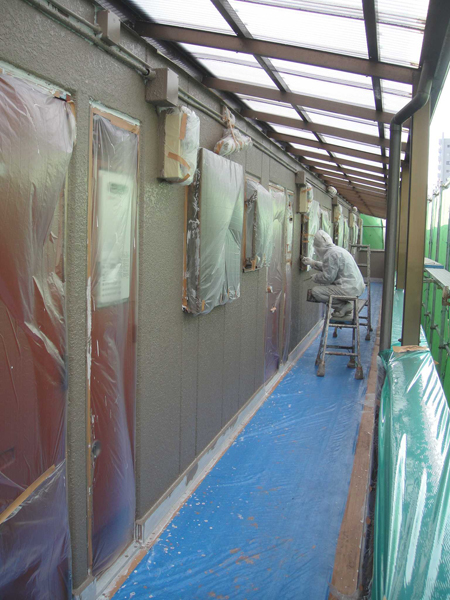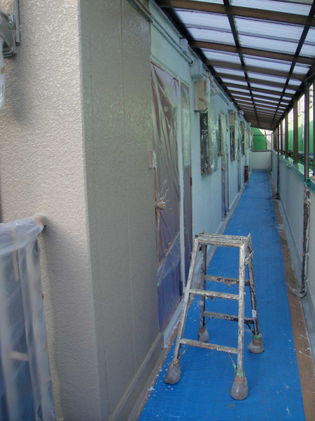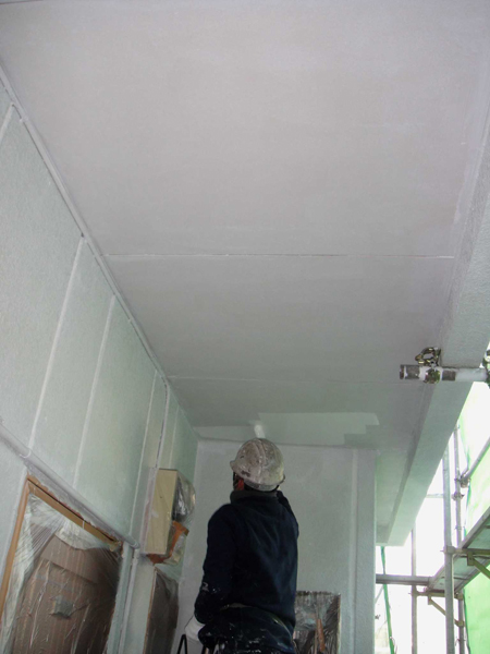 ![]() 廊下天井塗装 | ![]() 壁 仕上げ塗装 |