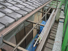 ![]() ベランダ屋根は張替の為、一旦撤去しました。(上) | ![]() |
