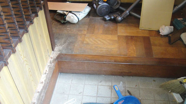 玄関リフォーム:シロアリ被害による玄関の上がり框をリフォーム