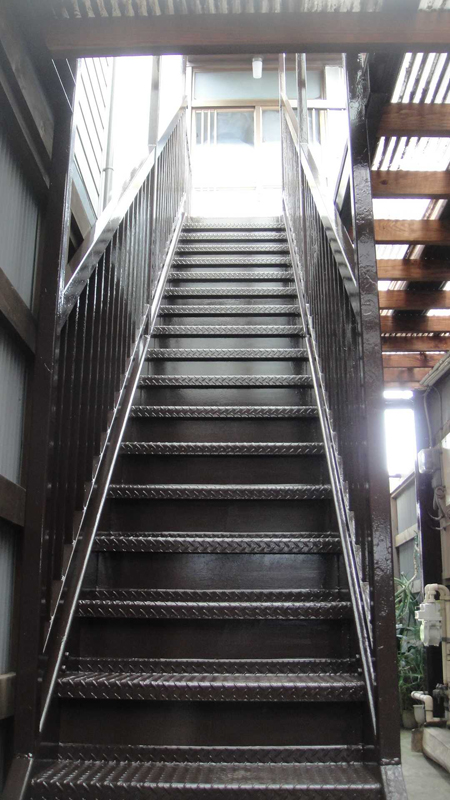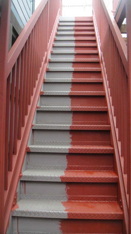 ・鉄骨階段、ベランダ、デッキプレート下部・塗装工事です